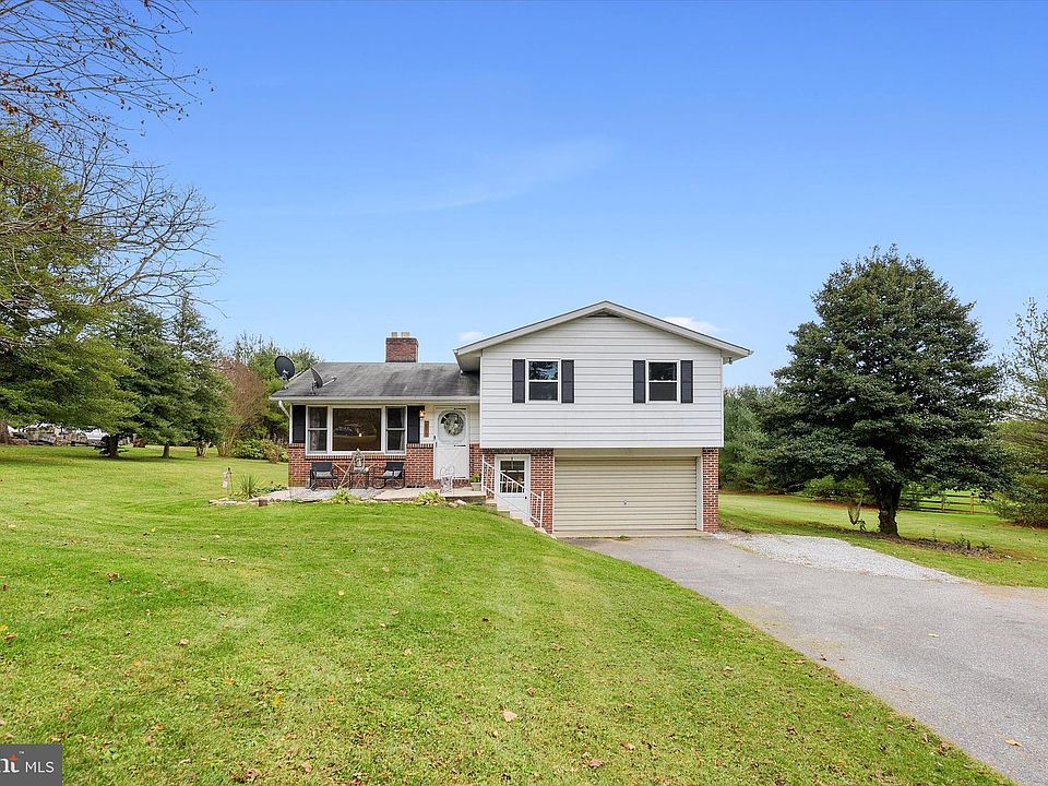 Get out of town and relax in this charming Split level with attached garage on just over an acre with room to spread out and enjoy the view from your deck. Step into the living room from the front porch onto hardwood flooring where you are greeted by a warm brick hearth fireplace. Cute kitchen with updated counters and appliances with breakfast area. Two spacious bedrooms and a full bath on the upper level. Lower level houses the laundry and utility rooms. Recent upgrades include HVAC and Hot Water Heater. There is no HOA! Available immediately!