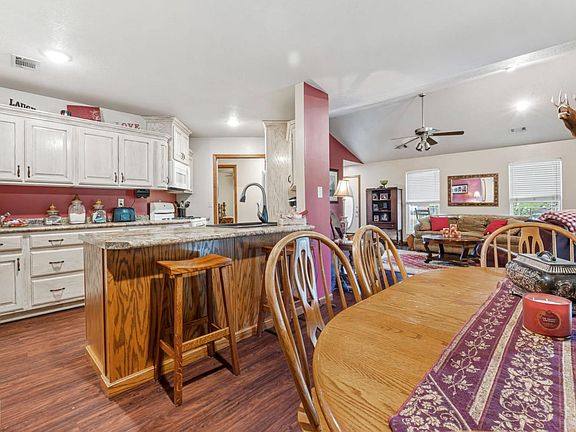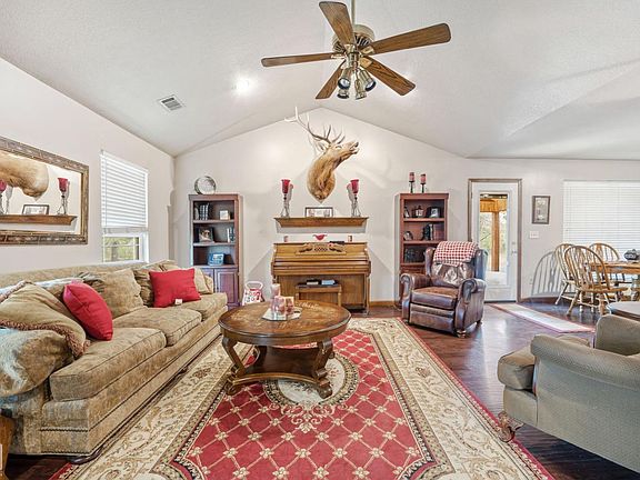 Charming cottage-style home on a spacious 2.5-acre lot. Open floor plan with dining room and breakfast bar. Kitchen features antiqued cabinets, gas stove, and appliances. Includes a covered 18x18 patio connecting to a 660 sq ft Mother-in-law suite. The suite offers a kitchen with a generous island, a cozy living room, and a handicapped accessible bathroom. There's an above ground pool with fence and deck. New HVAC and Water heater.