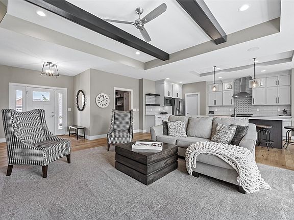 This stunning former parade home is sure to please! There is not a feature that isn't hard to fall in love with. Right from the moment you enter the foyer, your eyes are drawn to the massive amounts of daylight brought in from windows that line the stairs to the lower level. Great view of the flat, large backyard with a basketball court. The kitchen island is every family's dream. Plenty of space for everyone. The super awesome hidden pantry doors leads out to the garage so you can just shove the groceries right on in, or prepare yourself for kids that use it as an entrance:) The kitchen is beautiful with neutral and light finishes and the most beautiful sink. Split floor plan with a primary suite that features a massive walk in closet and bathroom. Enjoy game day Saturday's in the walk out lower level. Plenty of patio space for indoor/outdor fun. Did I mention it has a 4th garage stall? Too many features to mention!
