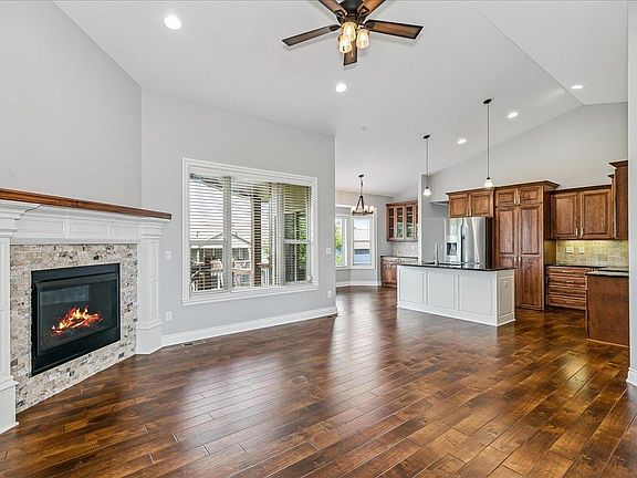Tucked away into a quiet cul-de-sac, this 4-bedroom, 3-bath home offers just under 2,900 sq ft of style, comfort, and functionality. Just inside you'll be drawn to the vaulted ceilings in the living room, anchored by a striking fireplace with a custom mantle. The kitchen and bathrooms feature rich, hand-crafted cabinetry that adds warmth and character to each space. The finished basement is designed for fun: stained concrete floors, a full wet bar, and plenty of open space for game tables, movie nights, or hosting friends. The oversized 3-car garage has plenty of space for your vehicles but also room for a workshop or storage while the mudroom entry makes it easy to keep the rest of the house tidy. The laundry connects directly to the primary suite for easy access. Just off of the dining area you'll have access to the big backyard that has an amazing covered deck and plenty of space for whatever you wish. Schedule a showing today!