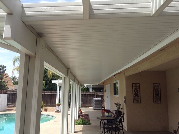 Home remodeled in 2006. Kitchen has Kitchenaid appliances-dishwasher, gas range, convection oven; recessed lighting and granite counter were also added. Remodeled bathrooms with low-flow toilets and showerheads. Interior doors changed to six-panel wood doors throughout and security doors on all exits. Two French doors lead to backyard and have accompanying security French doors. Garage door insulated and powder coated and has two garage openers. Pool is 40' long and 20' wide. New pool pump installed in April 2018. Solar panels purchased in 2015. Alumawood Patio covers east side and all of south side of home. Heating and Air Conditioning system with air filtration system installed in 2015. Life Source water filtration system throughout home. Composite roof installed in 2006. Home is economical and comfortable.