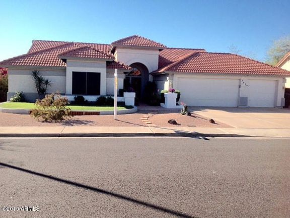 For more information on this property, contact the Listing Agent, Richard Gaylord at (480) 363-6526 or rgaylord@LongRealty.com. Back on the Market! Pulte's popular flr plans offering 3 spacious bedrooms plus Den/Office* The curb appeal alone makes you want to see what all this lovely home has to offer* Tiled entry, halls and updated kitchen with breakfast area-open to family room & exit to full length covered patio* You'll enjoy the warmth of the real wood burning fireplace in the huge living room on those cool evenings*The master suite offers dual sinks--separate tub/shower and private commode,plus exit to entertaining backyard*Open to full covered patio and huge tiled entertaining area* Built in Bar-B-Que waiting for your grill in this very private yard.Open to spacious family room with exit to full covered patio and huge tiled entertaining area* Built in Bar-B-Que waiting for your grill in very private yard.