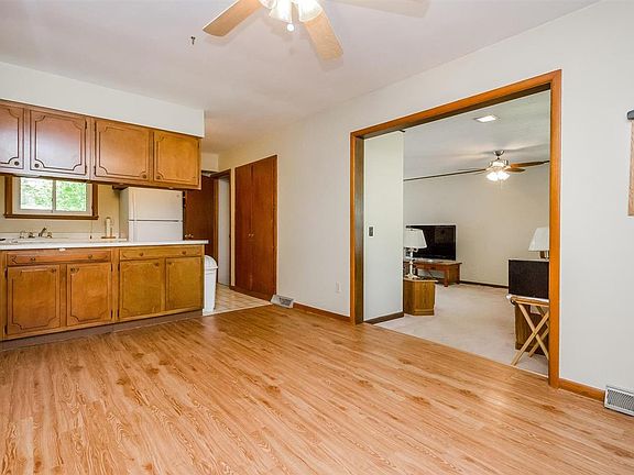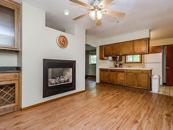 Open floor plan in this incredible ranch home with lots of updates. All new laminate flooring throughout entry, great room, dining area and kitchen. Beautiful 2 sided fireplace. 3 season room that you'll never want to leave! Featuring knotty pine walls & vaulted ceiling and double paned windows on 3 sides. Finished walk-out lower level with an office and a non-conforming bedroom plus a full bath. Newer detached garage with plenty of room for a shop. White vinyl fence surrounds this incredible yard.