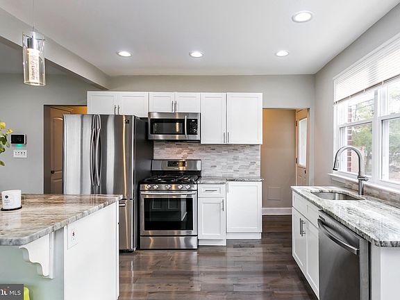 Welcome to Howard Park where your new home resides! There is a wide covered front porch which is the best place to unwind and relax after a long day. Upon walking into the main floor of the home, the open kitchen will have you fall in love instantly. It includes stainless steel appliances, beautiful hardware floors, and an island with storage. There is a spacious living and dining area with large windows flooding light through the home. The main floor bathroom is spacious with a double vanity, deep jetted tub, and immaculate tilework. The bathroom provides a dual entry into the primary bedroom and hallway. The bedrooms on the main floor have large windows to provide ample natural light. The side entrance makes the basement easily accessible and reduce foot traffic through the main entrance. The finished basement is huge and provides a laundry room, bathroom with dual entry, and a large bedroom. There is a huge backyard to entertain friends and family and solar panels to cut down on electricity bills. This home is located on a quiet street and in a peaceful neighborhood. It is walking distance to Gwynn Oak Park and Forest Park Golf Course. Very close to numerous parks and farmers markets like Druid Hill Park and 32nd Street Farmers Market. Only 20 minutes from downtown attractions such as the Ravens Stadium and the Inner Harbor. Home warranty included! Do not miss out on this property and schedule a showing today!