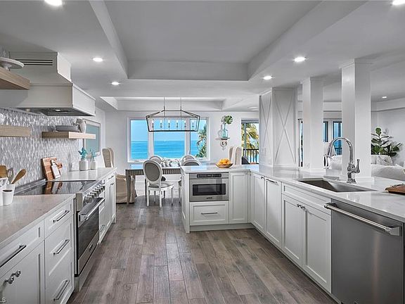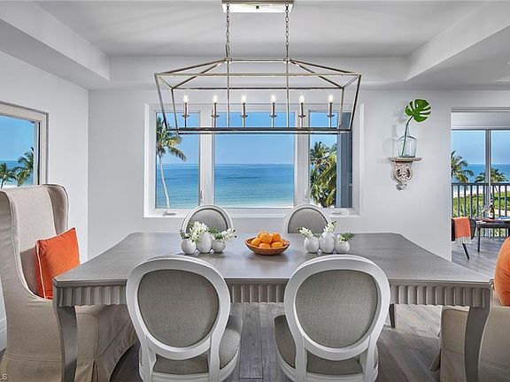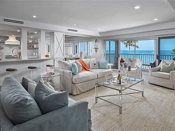 Directly on the sand, this crisp, coastal 3-bedroom condominium lives like a beach house overlooking the pristine Gulf of Mexico. This newly redesigned condominium provides an immediate sense of serenity with luxurious porcelain tile floors, light and bright finishes, and the turquoise colors of the Gulf seen throughout the open floor plan. Immediately be drawn to the picturesque window to the water through the dreamy kitchen, complete with Viking appliances, glass mosaic backsplash, custom floating shelves, and clean quartz countertops. The master bedroom is a paradise of its own with easy access to the lanai, custom built-out closet, and a well-designed bath with vanity. Complete with 2 spacious guest rooms, washer/dryer hook up in the unit, 2 extra storage areas, and only 20 neighbors, this is the ideal Naples escape.