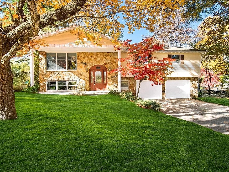Welcome to this inviting 4-bedroom, 2.5-bath bi-level home in desirable Blue Ridge on Bloomington’s north side. Situated on a .55-acre lot surrounded by mature trees and a flat, usable yard, this property offers space, comfort, and endless potential to make it your own. Step inside to discover fresh paint and new flooring on the upper level, a formal dining room, and a bright vaulted sunroom that opens to the deck overlooking the private backyard. Kitchen updates include new stainless steel appliances, generous counter space, and ample cabinetry for storage. The lower level provides a cozy family room with a masonry fireplace, built-in bookshelves, 4th bedroom, and a den or home office. Enjoy unique artistic murals and architectural details throughout, although they are easy to change. The roof and HVAC system are each under 5 years old, offering peace of mind for years to come. With excellent storage, multiple gathering spaces, and a sought-after northside location. Convenient to schools, shopping, parks, trails, Griffy Lake, Indiana University, and I-69.
