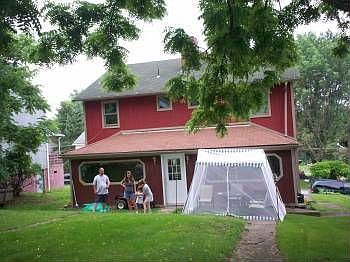 Floor to ceiling dec stone fireplace in LR/FR 2 exposed dec brick fireplaces in bedrooms Front porch the length of house Rear sunroom New furnace and