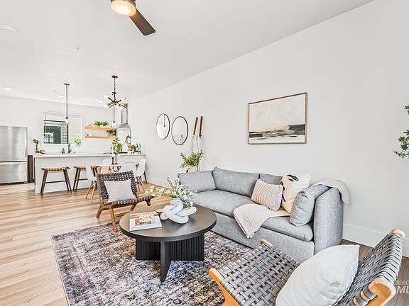 This North Boise condo was built with townhome plans and lives like a stylish urban brownstone. Located just moments from Whitewater + Esther Simplot Parks, Alchemist Coffee, the greenbelt, and downtown Boise. Featuring 2 bedrooms + office nook, 2.5 baths, tons of natural light, modern finishes, and an efficient layout. Enjoy a spacious 2-car garage with EV charging, plus a private rooftop deck with sweeping views and a secondary balcony for added outdoor space. Beautiful appliances (fridge, washer/dryer) included! HOA covers water, sewer, trash, landscaping, and exterior maintenance for easy, low-maintenance living. Whether you're sipping coffee on the rooftop or hitting the greenbelt, this home puts you in the heart of one of Boise’s most vibrant neighborhoods. A rare North Boise find that combines modern living, smart design, and unbeatable location—perfect for enjoying everything a Boise summer has to offer!