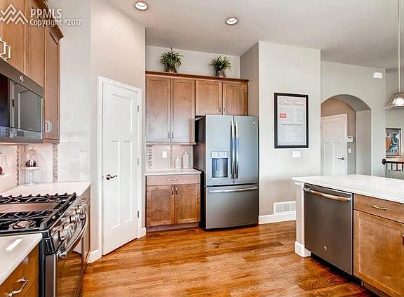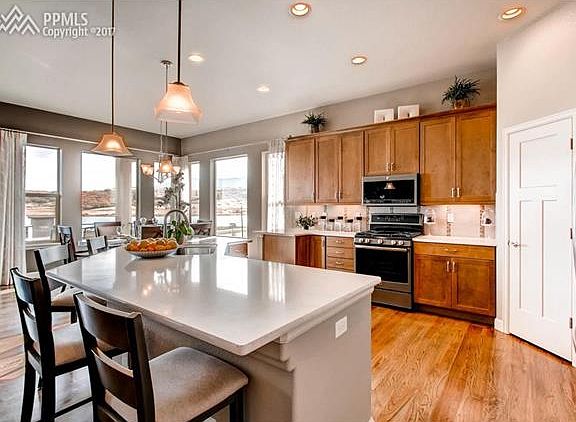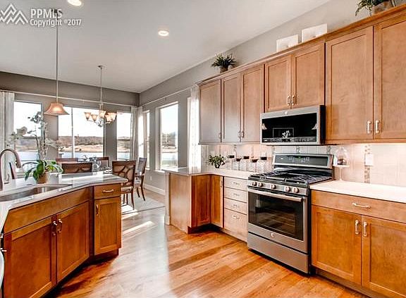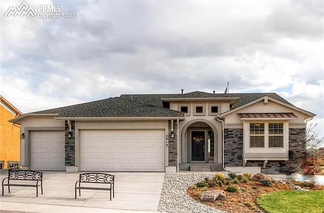 Ready in August. MODEL HOME Hillspire ranch plan with 3 car garage in Forest Lakes. Kitchen features maple cabinets w/42" uppers, stainless steel appliances & quartz counters. Hickory hardwood flooring on main. Brushed nickel hardware. A/C. Gas fireplace in great room. Finished walkout basement includes 1ft taller ceilings, wet bar plus 3 bedrooms, 2 baths including a jack & jill bath and rec room. Exterior living includes expanded 10x29 covered deck and is fully landscaped. Backs to 64acre lake with mountain views!