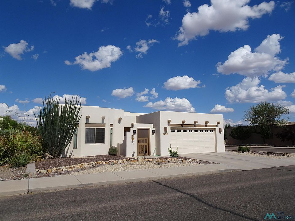 Country Club Estates, one of Deming New Mexicos' nicest Communities. Pueblo Styled Southwest homes, low cost yearly 55+HOA Community w/CC&R's located within the City. This 1798 sq.ft. home built in 2006 has 2 bedrooms, two baths, Main bedroom w/double sinks, large shower and shelved closet. Living room with Kiva Fireplace, Vegas, titled floors, skylites. Kitchen has eat at bar seating plus breakfast area for 2, gas range top, wall oven and microwave, Dining room is open to living room with built in cabinetry. Utility room just off kitchen with entry to 2 car garage w/storage cabinets, workbench, tankless hot water heater. Gated patio entry and large rear patio with Kiva fireplace. Just minutes to Downtown Deming and the I-10 to Las Cruces, Lordsburg and the Airport at El Paso, Texas. Silver City to the north, Columbus NM to the south. Did you see the price... you should have called already!