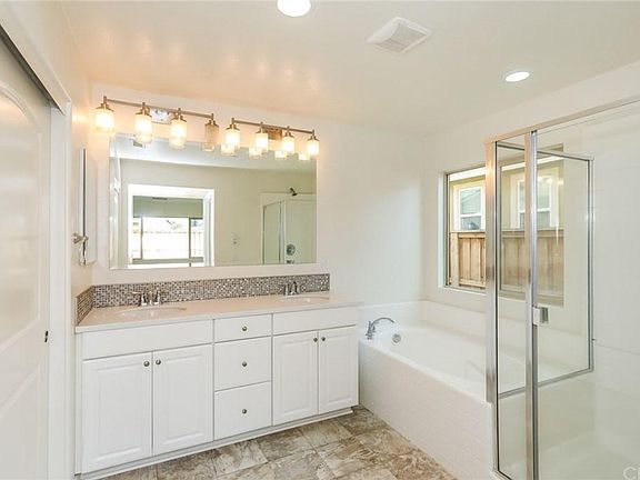 Built in 2015, this Lake Elsinore single story home offers a two-car garage, a covered back patio area, gas heating, stainless steel appliances, granite kitchen countertops, a walk-in master closet and a master bathroom with dual sinks and a separate shower and tub. High School District: Lake Elsinore Unified