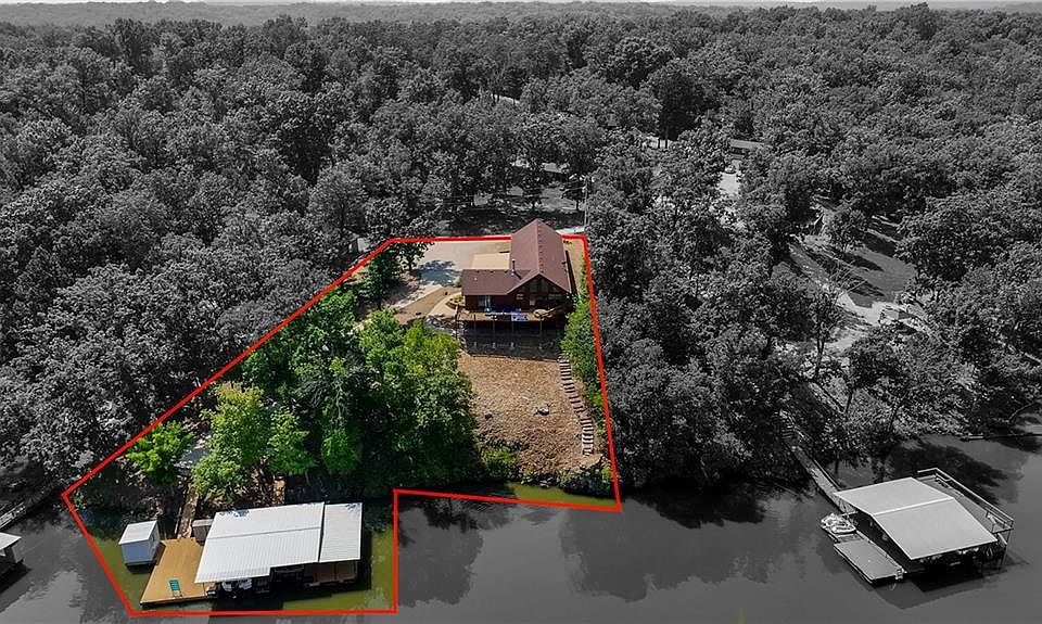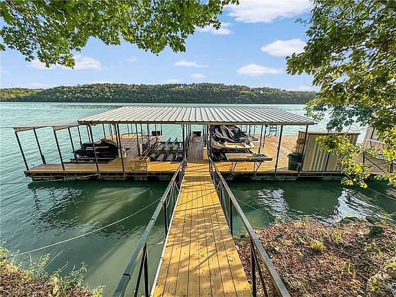 "Welcome to this stunning cedar-sided waterfront lake home located at the 77mm of the beautiful Lake of the Ozarks. It has breathtaking views of the main channel & comes with a 3 slip dock featuring 2 boat lifts & 2 PWC lifts. The dock also includes a sundeck for lounging & a storage bldg. perfect for entertaining & storing lake toys! You'll have easy access to the dock with a concrete drive that allows a golf cart or similar vehicle, or you can take the lighted stairs down. The spacious interior of the home boasts 4 bedrooms, 3 baths, & an attached 4 car garage. The kitchen is a chef's dream with custom cabinets, granite countertops, & stainless steel appliances. The open concept design allows for interaction between the kitchen, dining, and living rooms. Step outside to the full-length deck accessible through sliding glass doors in the living & dining rooms, as well as the master bedroom. The master bedroom features 2 closets & an adjoining master bath with a walk-in shower. The main bath offers a shower over tub & custom cabinets. The lower level of the home is fully finished & features a walk-out basement. The game room/family room is the perfect space to unwind, play games, or simply hang out. Additionally, there is a 3rd bath with a shower & laundry area with a stackable washer & dryer. The lower level also includes 2 bedrooms & a covered patio accessible through sliding doors in the family room. This incredible home comes fully furnished & turnkey, making it ready for you to move in & start enjoying lakefront living. As an added bonus, there is an option to buy the Deck Boat, 4 Wheeler, and electric bike for an additional $$$. Don't miss out on the opportunity to own this gorgeous lakefront retreat that offers both luxury & convenience. Schedule a showing today!"