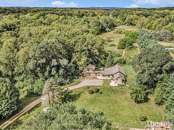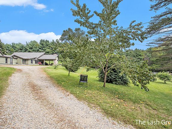 Hobby-farm living home, large pasture-like lawn with room for barnyard friends and fruit trees already planted. This home has a cottage feel with a large outdoor covered patio featuring a large stone-faced fireplace for outdoor living year-round. Open concept living and dining room features a cathedral wood ceiling and large windows with a view of the property. The large kitchen features hickory cabinets, a corner walk in brick pantry and a bar-top area with seating. Main floor also offers a large master bedroom and main floor laundry. The upper level offers 2 bedrooms (one is a walk-through). This home has a 1 ½ stall attached garage space and a 24x40 pole barn which has it's own electrical service.