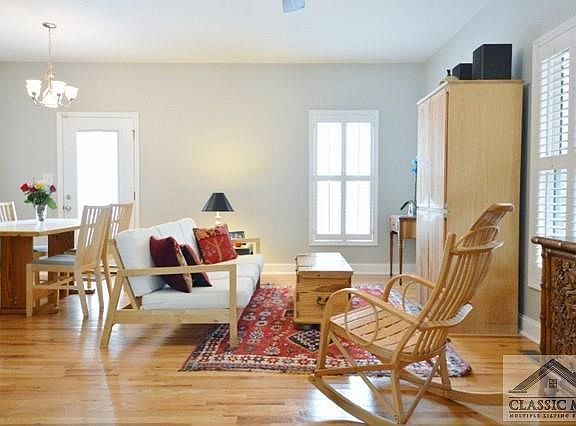 Adorable Craftsman cottage with picket fence, garden area, large covered front porch, upstairs porch and grilling deck. This one-owner home has been lovingly cared for with many upgrades including co-generation solar panels with remote monitoring, plantation shutters in the living areas, gleaming hardwood floors throughout living areas and upstairs. The interior has just been painted including all trim and ceilings, the standing seam metal roof is a year old and the exterior was painted less than 2 years ago with fresh stain on all of the decks/porches. This cutie is move in ready with all kitchen appliances remaining as well as the washing machine and dryer! The yard is a fruit-lover's oasis with peach and cherry trees, blueberry, raspberry and blackberry bushes. Don't be deceived by the size, this home offers ample storage and bedroom closets as well as insulated attic spaces.