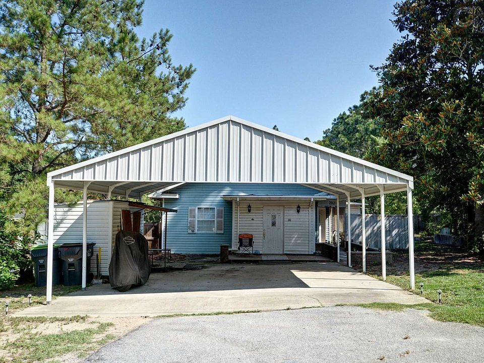 Located on almost 0.5 acres at the end of a long cul-de-sac street in the heart of Lexington sits a gorgeous 3 bed, 3 bath home. Off of the entry way is a spacious mudroom with access to the laundry room. The kitchen boasts tons of cabinet space, tile counters and white appliances. The open living room and dining room provide the ability to entertain guests, and features wood floors throughout the entire living space. The master suite features a large closet, and a private en suite with a large vanity and an additional countertop/cabinet storage space. The third bedroom is part of an in-law suite, with a private bathroom, separate kitchen and living space. Don't miss the fenced in backyard, storage shed on a concrete pad and huge carport!