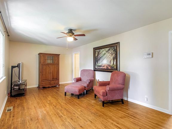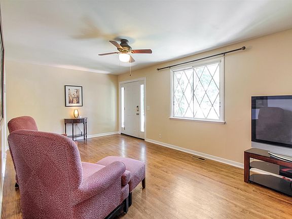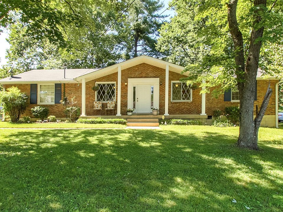 Brick Three Bedroom Home with Attached Garage! Wood Floors, Original Details, Vaulted Ceiling w/ Wood Beams, Updated Kitchen, Tiled Baths, Master Suite w/ Half Bath, Newer HVAC & Roof. Fenced Back Yard, Tree-lined View!