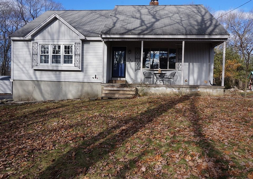 Located on 1.039 country setting lot! Town water and sewer. Walk up attic offers the possibility for second floor expansion. Eat in kitchen with Corian counter tops. French door leading from the kitchen to the 3 season porch. Spacious master bedroom. Second bedroom has carpet. Full bath. Replacement windows. There is a second driveway on the side yard. Shed with electricity. Great commuter location. Minutes to highway and shopping.