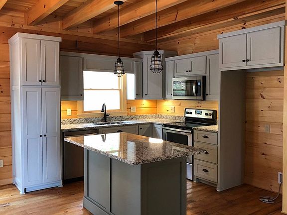 Be the first to own and sleep in this new craftsman true log log home built with a lot of attention to detail. You will love all the natural colors / finishes on the rough-sawn circular pine floors, walls and ceilings. Stainless steel appliances and earth tone color counter tops mixed with open living room with windows of a year round mountains makes this one a perfect "Ten". The fireplace takes center stage and is accented by all the clear stained tongue and groove pine wood, exposed beams and vaulted ceilings. For all seasons you have a year round long distance view as well as an elevated view from the upstairs bedroom. Basement is stubbed for another full bedroom and bath and would be a perfect time to work with the builder for any additional ideas and suggestions. Minutes to Blue Ridge and Blairsvllle. Great full time or investment part time rental income.