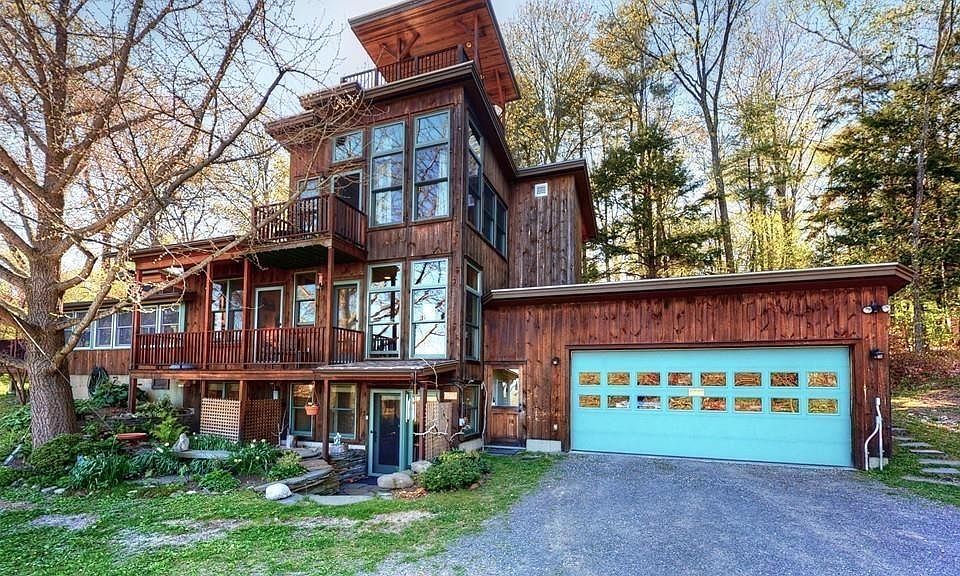 A unique home & beloved gathering place for writers, artists, & others seeking the peace of the countryside, Patchwork Farm Retreat comprises a main house w/ 3 separate living areas & 4 detached studios, set on 90+ acres of hardwood forest w/ a 40-mile view over the Holyoke Range.Outstanding craftsmanship & exquisite details throughout the original home and major 2008 addition, including floors of ash, birch, beech, cherry & maple from the property. First floor features a large living/dining area, screened porch, private deck, library, and bedroom with balcony. Upstairs is an en-suite bedroom, study, private entrance & cupola. Walkout lower level with private entrance includes a built-in kitchenette, en suite bedroom and lots of light. A perfect intergenerational home, a 4-stop elevator services all floors from an attached 2-car garage.Step outside to an elegant screened pavilion, miles of groomed trails & a private pond. All this just minutes from Northampton & I-91.