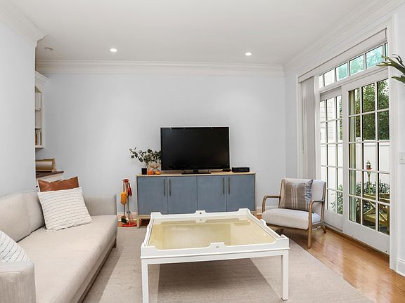 Stroll to school, trains, shopping and dining from this turnkey townhome with a secluded stone patio. Sundrenched interior boasts high ceilings and hardwood floors in a comfortable floor plan. Elegant living room, with gas fireplace and bay window; chic marble-clad kitchen open to dining/family room with built-in desk, sliding doors to patio and powder room defines the main level. Second floor delivers a master suite with tray ceiling, window seat, marble bath and walk in closet; spacious en-suite bedroom, office/nursery and pull-down attic. Relaxed playroom with gym area; full bath, laundry room and storage comprise the lower level. Offers an attached one-car garage. One of only three units in a private association. Enjoy an easy commute from this convenient location
