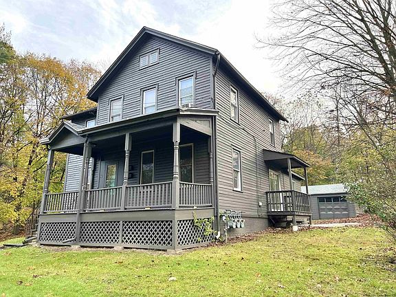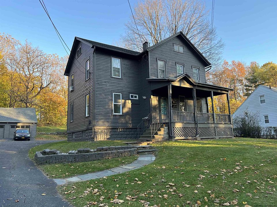 This impressive City of Kingston victorian two family home sits nicely back from the road on a triple size lot with (2) two car garages. There is plenty of off street parking and great access to Ulster shopping and restaurants. The pristine two bedroom lower unit is vacant and in move in condition with new appliances and butcher block countertops. The spacious one bedroom upper unit is currently occupied by a month to month tenant. There are three electric services and a natural gas fired boiler with radiators. Overall a very nice property for either income or owner occupancy.