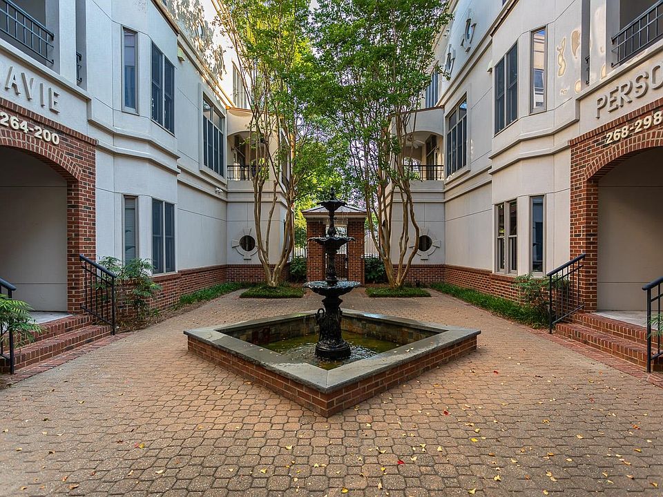 Welcome to this rare one of a kind UPDATED condo with multiple courtyards and water features around lush gardens in a gated community. Unbeatable access to city's center and Moore Square in highly sought-after FOUNDERS ROW! No carpet! Updated kitchen & bathrooms! Granite & quartz countertops, SS Appliances. Ceramic tile & hickory hardwood floors! Wood burning fireplace! Two gated parking spots, two large bedrooms, AND two covered balconies with storage facing the courtyard. Rare opportunity to own a quiet urban oasis in the middle of bustling DTR! At the corner of Davie & Person Streets across from Historic City Market! Stroll to restaurants, shops, & museums! Low HOA fees!