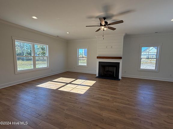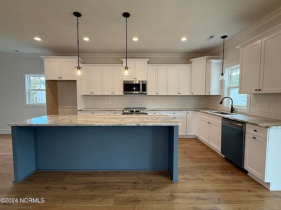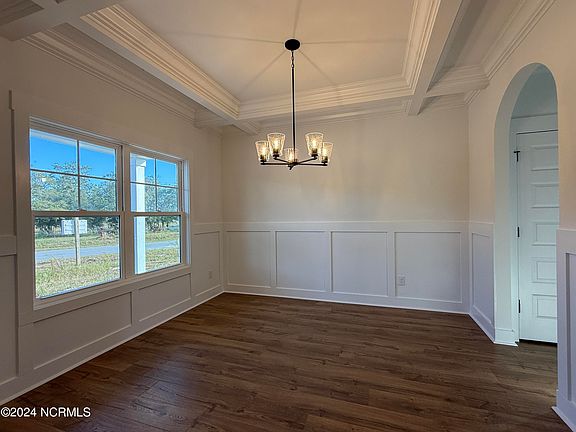 **The builder is offering $5,000 to use-as-you-choose** Welcome to the Wrightsville floor plan, designed and built by Holbrook Homes, located in the charming coastal community of Kingsbridge II. This stunning home boasts 3100 square feet of living space and is loaded with fine details that are sure to impress. The main floor features a large formal dining room with a coffered ceiling and wainscoting, a dreamy kitchen with a stunning subway tile backsplash, soft close custom cabinetry, beautiful granite countertops, and a breakfast area. Additionally, the massive living area features a shiplap accent fireplace, perfect for cozy evenings with loved ones. Upstairs, you'll find three large bedrooms and a bonus room. The house also features luxury vinyl plank flooring and crown molding on the main floor. The location is ideal, minutes from Camp Lejeune, area beaches, and the quaint coastal city of Swansboro. If you want to check out the construction progress and see if this is the floor plan for you, schedule your tour today! Disclaimer: Finishes and features may vary. Square footage and dimensions are approximate, subject to change without prior notice or obligation and may vary in actual construction.