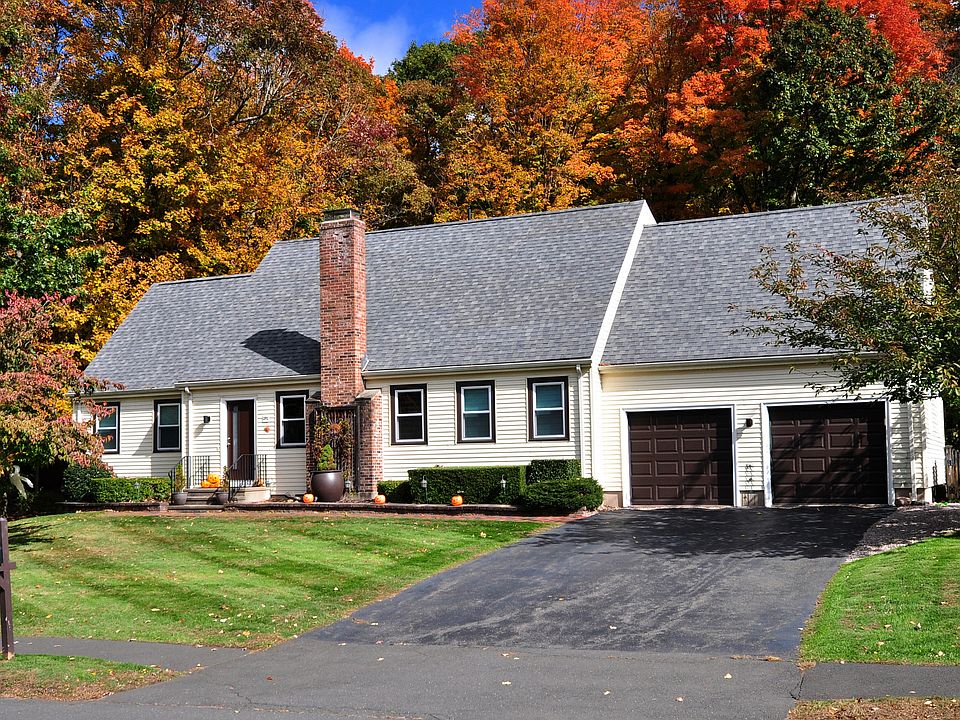 "Turn Key" Stunning & sun-filled, this oversized 4-bedroom Cape sits on a professionally landscaped lot with fantastic curb appeal & a level, fully fenced backyard-perfect for outdoor fun & relaxation. Meticulously maintained & beautifully decorated, this home is modern, immaculate, & move-in ready. The living room features vaulted ceilings, a fireplace, & gleaming hardwood floors that flow into the dining room, which also has a vaulted ceiling. The gorgeous chef's eat-in kitchen boasts a large center island w/a butcher block section, 6-burner gas stove, double ovens, stainless steel appliances, granite counters, cherry cabinets, a tile backsplash, & a wine cooler. The family room has a propane stove, cathedral ceiling, and access to the deck overlooking the fantastic backyard. The first-floor primary suite includes an updated bath & walk-in closet. Upstairs are 3 spacious bedrooms, a remodeled bath with dual sinks, a large bonus room, & second-floor laundry. The back staircase connects directly to the kitchen & 1/2 bath. The partially finished lower level provides extra space, a cedar closet, & storage. The 2-car attached garage includes a heated storage room. Some of the updates & amenities include a whole-house generator hookup, irrigation system, new windows & front door, central air, central vac, new oil tank, newer roof, new washer/dryer, & refrigerator. With thoughtful upgrades & exceptional care, this home presents the perfect blend of style, comfort, & modern living. New washer and dryer 2021, New main roof front 2016 & family room/sunroom 2022, Back roof age unsure -Maybe 2010 new garage doors 2022, new a/c unit 2021. New energy efficient Windows & Front door 2024. Cedar closet in lower level, Located walking distance from both Henry James and Squadron Line schools, minutes to Simsbury Center, Parks, hiking and bike Trails. Sidewalks for taking your strolls. Don't miss this Gem, its A dream home! Schedule your tour today!