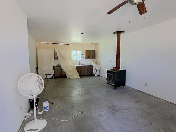This country-style shop/home on 12.59 acres is perfect for the outdoor lover looking for a project. Rooms include a primary bedroom with double closets, a spacious secondary bedroom, full bathroom, open kitchen/living space with wood stove and an insulated garage with garage door opener. Concrete flooring and brand new paint are also features of the property. Kitchen appliances are not included. Acreage has wooded areas and wildlife has been seen on the property. Possibilities are endless!