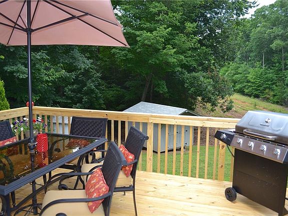 USDA eligible! Home warranty included! Relax on the front porch or overlook your land from the back deck. One level living with desirable open floor plan, split bedrooms, kitchen peninsula, vaulted ceiling and lots of natural light. Freshly painted interior and new decking. Conveniently located with easy access to I-85. Refrigerator and both storage buildings convey. Convenient work bench in the 2 car garage. Beautifully maintained!