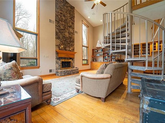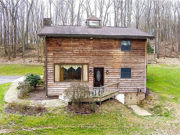 This 4 bed 3 bath Hemlock sided home is nestled near Seven Springs/Hidden Valley Resorts & Glades Pike. Sitting on 3 private and level acres, it's walking distance to Laurel Hill State Park. Inside this home has a great amount of craftsmanship & custom design. Walk right into the open space living/dining & kitchen area & immediately notice the hand laid floor to ceiling stone fireplace perfect for the rustic feel. Custom designed kitchen & living area that is full of natural light, built in cabinetry and granite countertops, suitable for a breakfast area. A unique spiral staircase is designed to enhance the open feel w a 4-sided glass copula above. Extra large master, ensuite with another stone, wood burning fireplace, a skylight added for natural lighting, a stand up shower w/4 shower heads and jet tub. Enter out onto your 28X16 private deck and enjoy the serenity that the mountains have to give. Large 2 bay garage and under deck storage. Let this be your next getaway home!