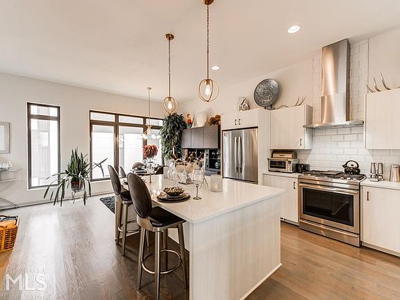 Manhattan-style living in ATL! Stunning 3- level end unit Modern Townhome in Lake Claire! 3BD/3.5BA modern end unit townhome in coveted Mary Lin/Inman/Grady school district! Steel framing! Open floor plan & amazing natural light. High ceilings & ebony hardwd floors. Modern chefs kitchen w/huge island. Covered porch & grill deck. Big rooftop deck w/ beautiful city views of the A Train! 2 car garage. Common greenspace area. Low HOA fee. Set on the future PATH extension to the Beltline. Walking distance to Decatur, the bike PATH, Pullman Yards & more! Better than NEW!
