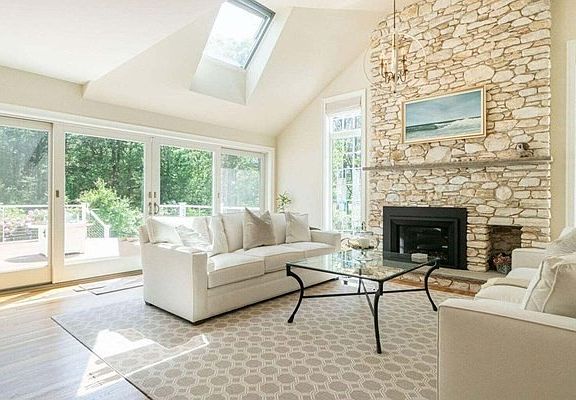 Destination Serenity...You have arrived. Luxuriously comfortable residence, understated in its elegant flow and quality amenities. Exquisite Primary Suite offers a private Office, dual closets, bath with soaking tub and linear shower, heated floors. Additional 1st Floor Guest Suite, 2nd Floor Guest Suite, as well as a large Apartment above the 3-Bay Garage. 2 additional Large Bedrooms on the 2nd floor of the Main House. The Chef's Kitchen offers an 8' zinc Island, Subzero refrigerators, Thermidor, Fisher Paykel, Southwest exposure over the private deck, glorious sunsets. New systems in 2019: HVAC, on-demand hot water, electric and plumbing, garage doors, and even the septic system. Photos from 2021. Easy stroll to private association Beach. Remarkable Estate in an Excellent Location.