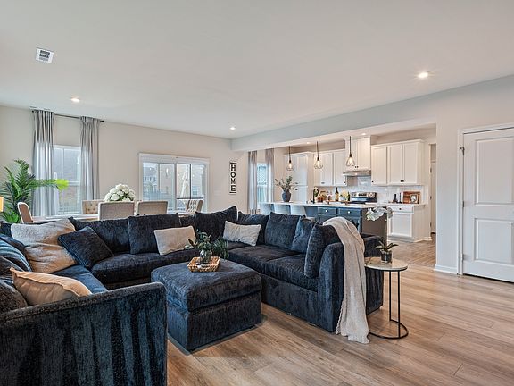 This stunning Hudson Plan is designed for the way you live—light, bright, and full of thoughtful spaces. The main level greets you with an entertainer’s dream kitchen featuring a grand island, upgraded white cabinetry, tile backsplash, stainless appliances, and pantry, all opening to a spacious great room and dining area filled with natural light. A versatile flex room works perfectly as a home office, playroom, or gym, plus a convenient guest bedroom and half bath complete the first floor.
