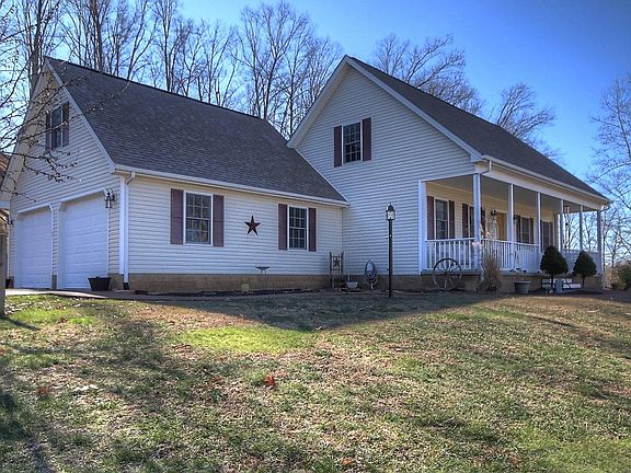 Located only 2.5 miles from London city limits you'll find this country home set picturesquely on a 4.32 acre, unrestricted, partially wooded lot! This warm home was custom built by the owner & a perfect place to sit back in your swing or rocker & enjoy the 36' covered front porch. The 1.5 story cape cod offers on the 1st level- foyer, 2 bedrooms including master bdr w ensuite bath & walk-in, large great room w fireplace, dining area, kitchen w range/dw/micro, 1st floor utility w sink & built-ins, hardwood & vinyl flooring. The 2nd level has 2 guest bdrs each w walk-ins, guest bath & a bonus room over garage that can serve as 5th bdr or man's cave! Two Trane heat pumps- 2.5 & 2 ton, security system w window, motion, heat & breakage sensors, 12X20 storage bldg. w electric & security, 2 car attached garage, 11X32 concrete patio, chicken coup, fenced areas & beautiful tree lined ridge. This tract could be divided into multiple lots.