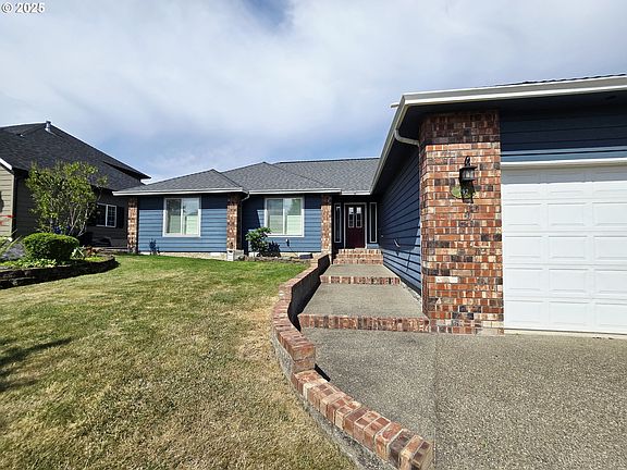 Welcome to this beautifully updated one-level 3 bedroom 2 bathroom home nestled in a quiet neighborhood with breathtaking views of the surrounding mountains and valley. Set on a generous 0.23-acre lot, this home offers a perfect blend of comfort and charm, both inside and out. Enjoy a modern, energy-efficient lifestyle thanks to recent updates that include a new roof, HVAC system, vinyl windows, fixtures, appliances, sinks, carpet, interior paint, expanded patio, and backyard fencing.Step into an inviting living space with vaulted ceilings, hardwood floors, and a gas fireplace that instantly makes you feel at home. The light-filled kitchen, featuring new stainless steel appliances, including a gas range, plenty of counter space, a breakfast nook, dining area, and eating bar offer ample space and storage next to the laundry and utility room. The primary bedroom is a standout feature with a large walk-in closet and a luxurious, spa-inspired bathroom complete with a tile walk-in shower and a freestanding tub. Roman shades throughout the home add elegance and privacy, while ceiling fans in every room and on the back patio keep things breezy and comfortable all year. The backyard is a low-maintenance haven with established grapevines, fig and apple trees, and mature landscaping all watered by an in-ground sprinkler system. Enjoy the unbelievable sunsets and scenic views while relaxing on the covered patio, sipping your morning coffee, or hosting friends for an evening barbecue. With its thoughtful updates and peaceful location, this home is ready to welcome its new owners to the best of Pacific Northwest living.