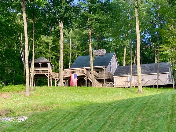 This home is perfectly situated; 10 minutes from Bromley, 5 minutes to town and near hiking and VAST trails! Welcome to your dream home, situated on 4 acres with breathtaking views. This property offers an ideal spot to watch the sunset over Equinox Mountain from the large multi-level deck. The heart of this contemporary home is the open great room that features soaring ceilings and a wood-burning fireplace surrounded with impressive stonework and great natural light. This room flows right into the dining area and kitchen, creating a perfect atmosphere for gathering. Also on the main level: a primary bedroom with a sauna, and two other well-sized bedrooms. There is a finished lower level with a second fireplace that brings more living and entertaining space. It’s a great bonus space for everyone to spread out. And it doesn't stop there! The third floor consists of a 1200 square foot loft space that provides versatility for use as a gym, office, playroom, or whatever suits your lifestyle. This home is not only beautiful but it's practical, with amenities including an attached two-car garage, an oversized mudroom, and a laundry room with 2 washers and dryers! A paved driveway ensures easy access, while central AC keeps you comfortable during the summer.