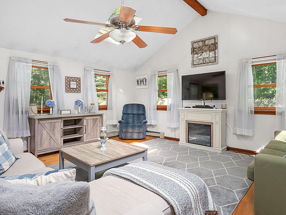 Nestled in the sought after Mystic Lake Hills neighborhood, this spacious ranch style home offers comfortable living and great entertaining space. It boasts a bright kitchen and dining area, formal living room, and a large family room with cathedral ceilings. There are 3 bedrooms, including a primary with private bathroom. Recent upgrades to the septic and electrical systems, along with ample storage, add to the home's appeal. With deeded beach rights to Mystic Lake, as well as neighborhood tennis and basketball courts, this home is a paradise for outdoor enthusiasts. Whether you're looking for a peaceful retreat, a place to gather, or a park-like setting for gardening, this property offers the perfect blend of comfort and convenience. Excellent dining, shopping, and the Cape's best beaches are nearby, making this an ideal year round or vacation home.