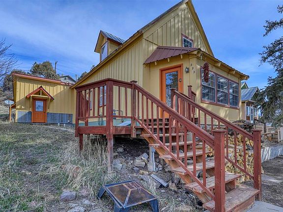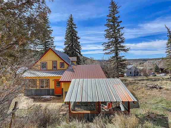 Do you want to own a piece of history in Pagosa Springs? This was a church in the 1900s. You will be able to see the church accents upon entering the living room. The wood floors are original! There is a great woodstove right inside the entry with rock wall behind it. Very charming! There is new carpet upstairs in the two bedrooms and large lounging area. The bathroom is Jack and Jill like with a large storage area connecting to the bathroom. The kitchen is compact with quite a few cabinets. With the huge laundry room behind you can build a huge pantry or expand the kitchen. There is one bedroom downstairs and what is being used now as a tv room could be a bedroom. There are two closets iin it. The concrete flooring counld be is heated with the tubes in the floor. Just needs a boiler. The room is nice and bright! The exterior is great with wood siding with metal on the bottom. The front porch is big enough to sit outside and enjoy the view of Square Top. Walk to the hot springs and outdoor activities in the park. 3 large apple trees on the property!