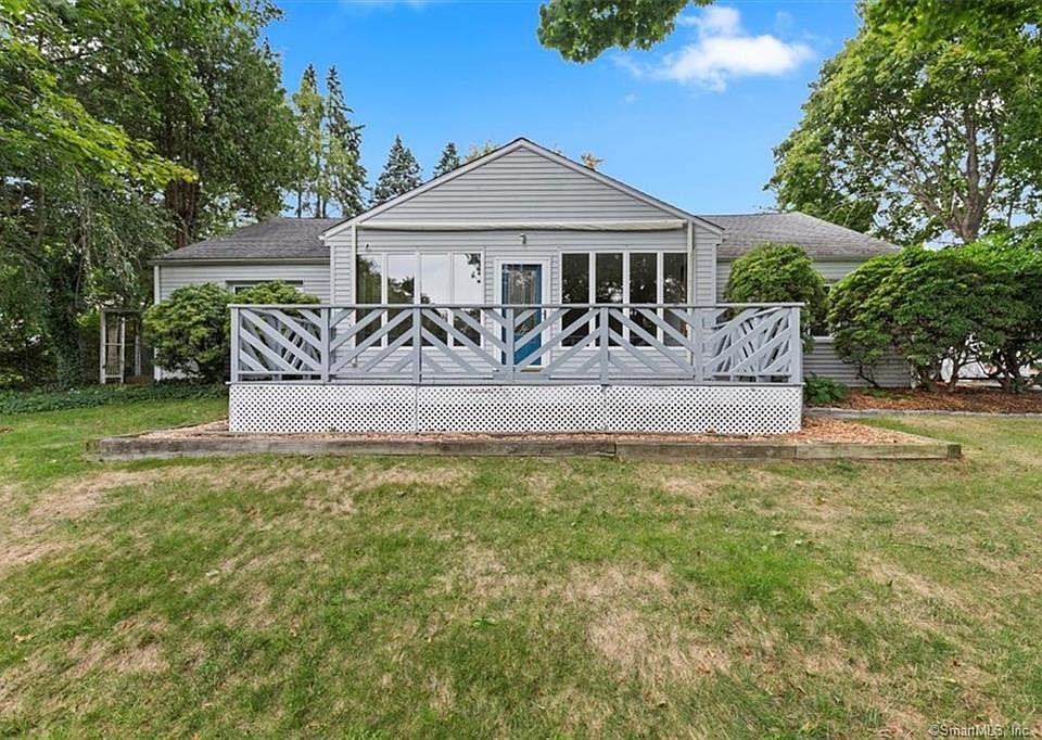 One Level Living At It's best! You'll love the oversized living areas that come with this sunny 3 bedroom 2 Bath 1,940 square foot move-in ready ranch style home. The open floor plan is ideal for entertaining and features an enviable party sized Living Room with atrium area surrounded by windows, access to an expansive front deck, and a generously sized sitting area with wood burning fireplace; a nicely appointed Formal Dining Room with built-ins, custom chandelier, and hardwood flooring; and a chef friendly Eat-in kitchen with island, a Dining area, corian counter tops, and includes appliances. Three bedrooms include a Primary with full bath. The large main bath is accented with double sinks and jetted tub. Main level laundry include the washer and dryer. Mud Room/Breezeway has garage and kitchen access. Central air. Beautiful fenced level yard and large patio are ideal for seasonal entertaining. Walk to beach, neighborhood stores, and restaurants. A short ride to Metro North/New York City train and downtown Milford. A must have gem!