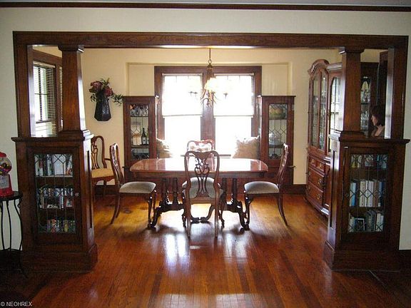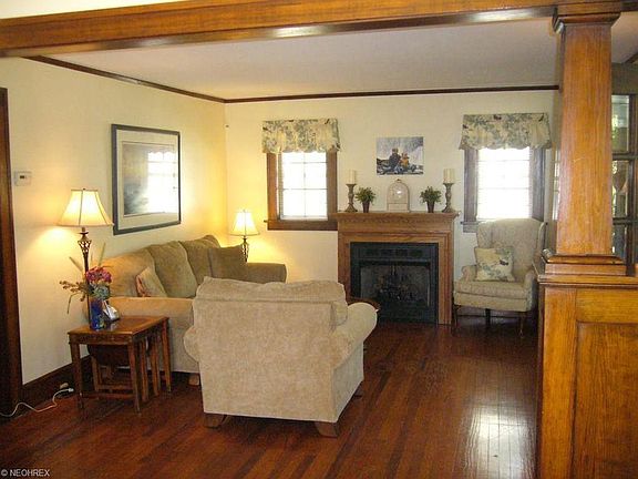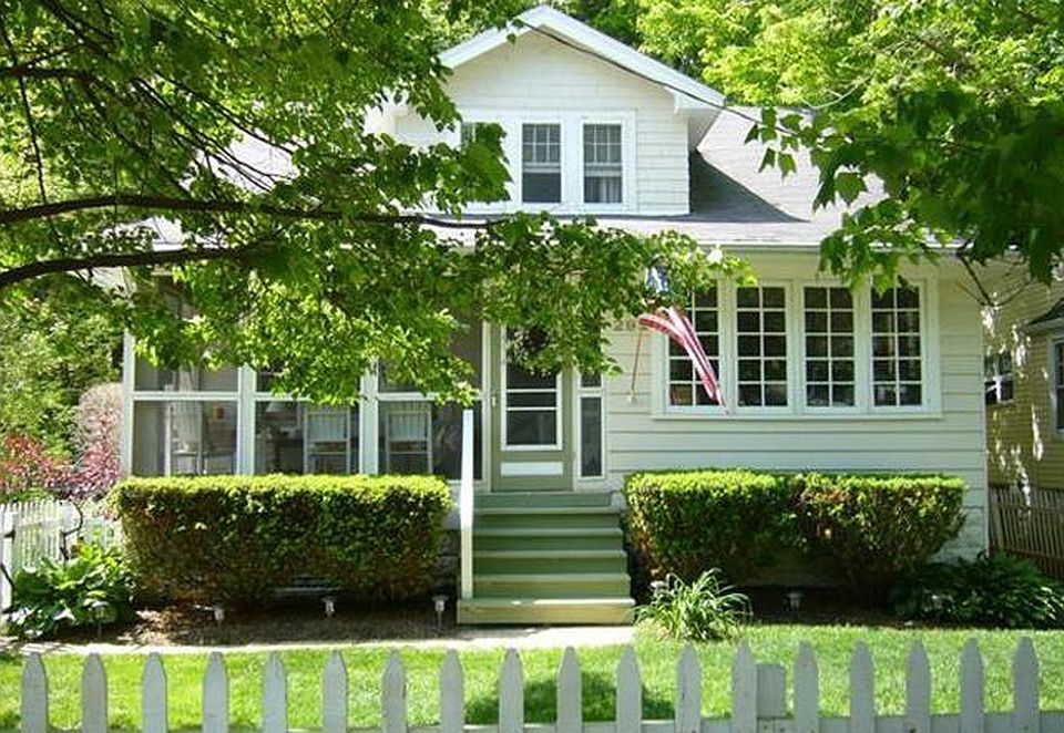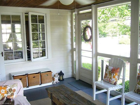Beautiful Arts and Craft style home with original woodwork, hardwood flooring throughout and endless charm. Spacious kitchen with authentic cabinets and newer stainless steel appliances. Roomy dining area with classic built-in cabinets opens into a spacious living room connected through the french doors to a window-filled den or office. Spend hours entertaining or relaxing on the front screened in porch or private back yard. This home also presents an updated tiled bathroom and recently added central air and high efficiency furnace. All just a short walk into the center of Chagrin Falls. Showings start Tuesday afternoon.