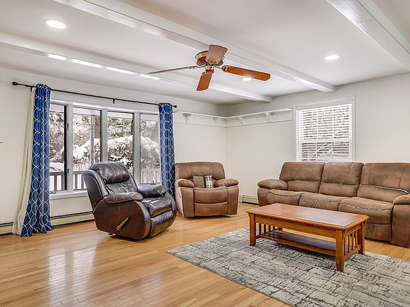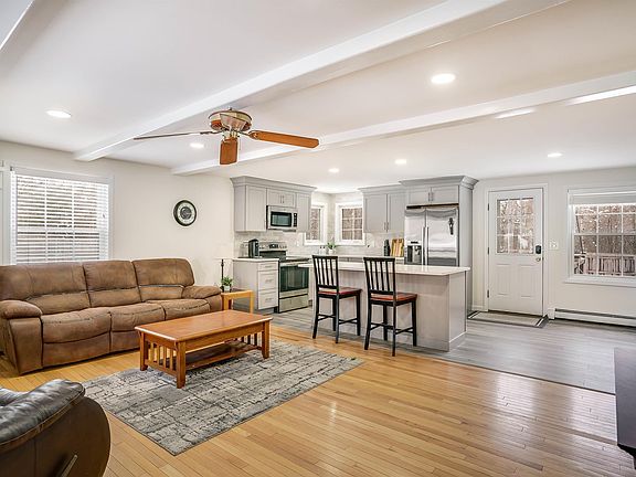 This delightful ranch offers a perfect blend of charm, contemporary living while nestled on a spacious 1.5 acre lot, in a convenient location. Step inside to a well-appointed living space with real hardwood floors throughout the living room, hallway, and generously sized bedrooms. The newly updated kitchen exudes modern elegance, featuring shaker-style doors, a large quartz island & counters, stainless steel appliances, lots of storage, a beautiful tiled backsplash, and new LVT flooring. Enjoy seamless transitions from the kitchen to the cozy living area, creating an ideal space for relaxation and entertainment. The recently renovated luxury, spa-like bathroom adds a touch of sophistication. Recent upgrades include a new boiler in 2022, a newer hot water tank, and a new water treatment system, ensuring a worry-free living experience. The large deck and yard beckons outdoor activities, perfect for enjoying the surroundings. The lower level bonus room provides versatility for various uses. The additional unfinished space in the basement with high ceilings is perfect for creating more living/recreation space or storage. Experience the convenience of immediate occupancy in this move-in-ready home. The excellent location adds to the property's appeal, with plenty of parking and a shed for yard tools. Make this ranch your home sweet home. Showings begin 2/3/2024, Open House Sunday 2/4 11:00AM-1:00PM