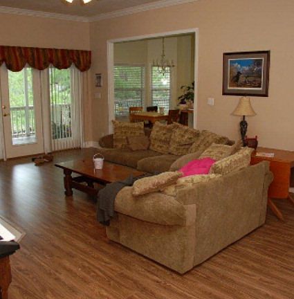 This 4 bedroom 2 bath home has a location that has it all: a quiet street in the county with fabulous pond views and fishing privileges on pond or from dock. This split floor plan features a master suite with oversized bedroom perfect for home office, study, or nursery and master bath with garden tub, separate shower, double sink vanity, and walk in closet. Three bedrooms share a bathroom with dual vanity and tile shower/tub combo. The bright kitchen and breakfast area has windows overlooking the pond views. The great room has newly installed wood floors and gas log fireplace with built-in cabinets with a door leading to the covered deck. The foyer and dining room also have new wood floors. The 1.17 acre lot includes beautiful backyard with lots of room to run and play or for planting a garden. Also includes a wired storage building, mature landscaping, and a sprinkler system. Call today to see this wonderful property.
