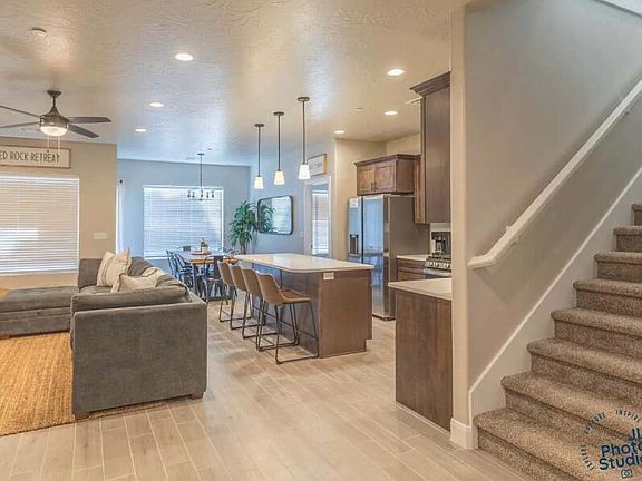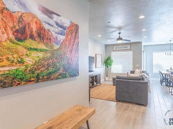 Beautiful and spacious townhome used as a Nightly Rental at Zion Village in Hurricane. One of the best ways to earn money on Vacation Rental Investments is the ability to host large groups. This is the least expensive home on the market that can sleep 20 people with room to spare! The home has been successfully rented for a few years and comes fully furnished with bookings in place! Zion village has some of the best amenities in Southern Utah, including a huge pool (heated year round), lazy river, splash pad, clubhouse and gym. Call listing agent to schedule a showing!