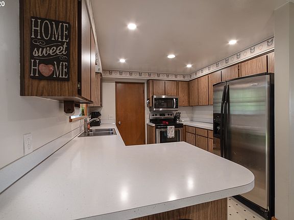 Home back on the market due to no fault of the seller.Beautiful, updated & clean single level ranch style home located within walking distance of downtown Estacada. New roof & Furnace with air cond. 3 Bed 2 full BA, living room with fireplace, dining area with built in cabinets, Laundry/extra storage area off kitchen. S.S appliances, covered back patio great for all seasons. 2 car garage, Sprinklers new plumbing thru out home. Rv area next to garage. Great starter home in the heart of Estacada.