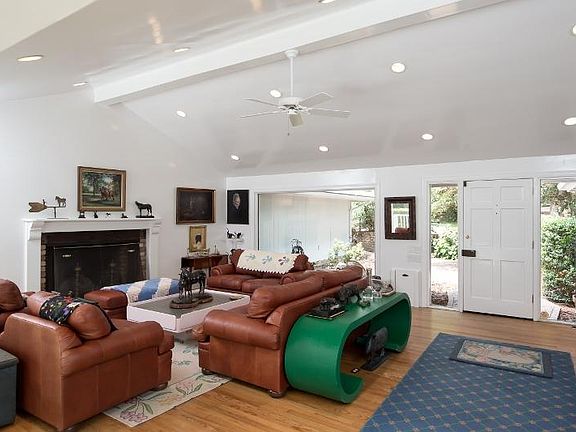 Peaceable Kingdom Farm's secluded hilltop setting is situated on 6.2 acres in horse country 2 miles from downtown Southern Pines. Gorgeous, renovated mid-century modern home, walls of glass, hardwood floors, recessed lighting & breathtaking views. Approximately 3,000 sq ft on one level. Custom windows & glass doors throughout. Living room with vaulted ceiling & fireplace. Dining room with skylights. Separate office. Master bedroom with fireplace & two walk-in closets. Three additional bedrooms, two renovated bathrooms & central air. Grandfathered horse farm, fenced paddock & run-in shed. Many exterior updates including new roof & brick walkway. Spacious, gourmet eat-in kitchen with fireplace. Stainless steel appliances throughout. Separate wet bar. Interior house painted 2015.