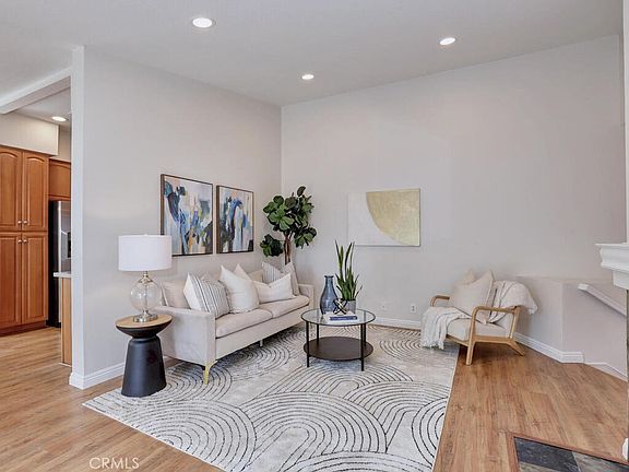 ABSOLUTELY STUNNING! This upper-level residence is a true gem with 2 bedrooms, 2 bathrooms, and a renovation that has brought out its natural beauty. Light floods through every corner, making it a welcoming haven you'll fall in love with. Step inside and be greeted by a bright staircase leading you to the heart of the home. The living room boasts an abundance of light from a spacious patio door, a cozy fireplace that draws your attention, and soaring vaulted ceilings that create an open and airy atmosphere. Adjacent to the living room, you'll find the dining area and kitchen, thoughtfully designed in a windowed corner with elegant plantation shutters. These not only provide privacy but also invite more of that beautiful natural light inside. The kitchen is a chef's dream, featuring ample prep and storage space, sleek quartz countertops, recessed lighting, and stainless steel appliances. Your private retreat awaits in the primary bedroom, complete with a sliding door to a charming balcony, a generously-sized walk-in closet, and a renovated ensuite bathroom. The bathroom is a spa-like oasis, boasting a quartz dual sink vanity and a separate privacy door for the shower and commode. A roomy guest bedroom and an updated guest bathroom complete the interior spaces. Convenience is key, with direct access to a single-car garage that also houses laundry hookups. But the true highlight is the spacious entertainer's patio. With enough room for multiple seating areas, it's the perfect spot for hosting gatherings with family and friends. Located in the highly sought-after Serabrisa community in Rancho Santa Margarita, you'll have access to fantastic amenities, including a stunning pool, spa, patio, grilling complex, and a playground. The benefits extend beyond the community, with access to a fabulous sandy beach facility, a serene lake, numerous parks, walking trails, and more, all within the city. Great schools, shopping, dining, entertainment, and easy commuting options are all within reach. This is a prime opportunity you won't want to miss out on!