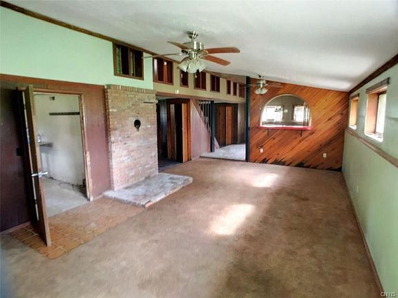 Located on almost an acre of land this property is perfect for country living! The large backyard is fully fenced in and beautiful. Walk in the back door to a large living room next to the large dining room with vaulted ceilings. The kitchen is open with plenty of counter/cabinet space. The main floor also has a half bath with the opportunity to make it a full bathroom. Upstairs you will find vaulted ceilings in the hallway, three bedrooms and a good sized full bath!