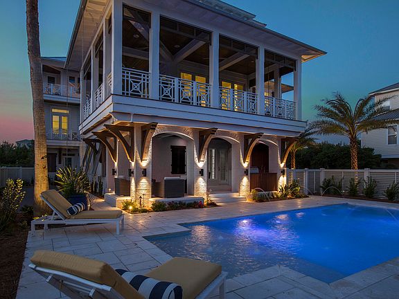 Located in a four-home enclave in the heart of Inlet Beach, 292 Pompano sits only one row back from the beach and was built with intention and elegance by a team of architects and designers. The interior and exterior designs reflect this, with beautiful and innovative designs combining the stunning Gulf views with the height of luxury living. 292 Pompano initially greets you with beautiful stone walkways and white privacy fences; and invites you in with a handsome arched mahogany door and a mosaic-tiled water feature. An inviting salt-water pool, complete with a sunbathing tier, captures maximum sunlight and is heated for night and wintertime enjoyment. The main living area, located on the second floor, will absolutely stun you with the expansive views of the emerald Gulf waters. 2020-10-05