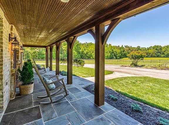 Private, gated estate, app 20 acres. Fenced pastures for horses w/2 barns, arena and hay field adds to the natural property beauty. French Country home tucked down a paved driveway; Old World feeling w/modern twist, in a well-designed, efficient home. Stone and brick exterior w/cedar columns & slate floor front porch, shutters, multiple dormers, architectural shingle roof and side-loading garage. Open floor plan designed for comfort and entertaining. Numerous recent upgrades and renovated kitchen. Wide plank heart-of-pine floors, columns & custom trim work. Kitchen opens to living room; custom cabinets w/granite countertops, tile backsplash, large island w/farm sink. Main floor master suite w/glass door to the covered patio; master bath w/steam shower, garden tub. Three 2nd level bedrooms & large bonus/game room w/serving bar. Relax on the large patio w/knee wall or stay dry and warm under the covered patio w/wood burning stone fireplace. Hardwoods provide privacy and summer shade.